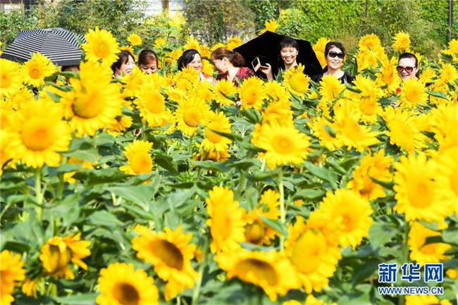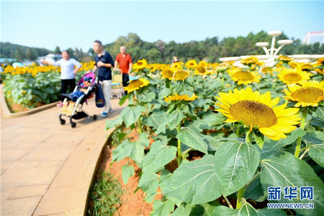 近日,位于長(zhǎng)沙市的湖南省森林植物園中的向日葵在秋陽下競(jìng)相綻放,黃花綠葉交相輝映,吸引眾多市民、游客前來觀賞。