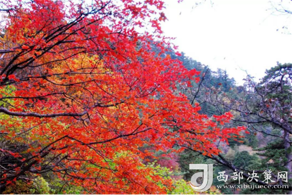 深秋,被收獲過的大地,裸露著年復(fù)一年的坦誠。華山的紅葉是一種渾然天成、不加修飾的美。云淡風(fēng)輕、紅葉晚霞,郎才女貌,天然絕配。華山紅葉依托青山白云,無疑中便蘊(yùn)含大自然神秘的面紗,也吸引名人志士的不懈探索與尋覓,天然造成鐘靈毓秀,是珍稀植物的棲息隱居良地。