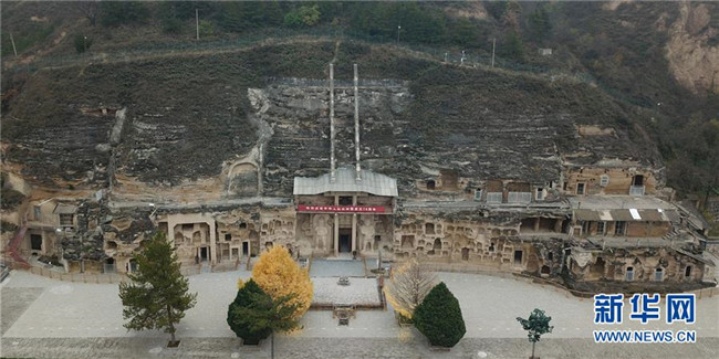 11月5日無人機拍攝的甘肅省慶陽市北石窟寺。 新華社記者 馬寧 攝