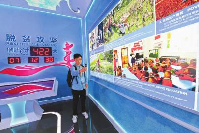脫貧攻堅(jiān)是幸福中國的生動(dòng)詮釋。一塊脫貧攻堅(jiān)倒計(jì)時(shí)422天的標(biāo)識(shí)牌引發(fā)圍觀,展示的脫貧攻堅(jiān)8項(xiàng)主要成果中,四川占有兩席。作為教育脫貧的成果,一張照片展現(xiàn)了涼山州昭覺縣幼教點(diǎn)輔導(dǎo)員帶領(lǐng)幼兒學(xué)習(xí)普通話的場景;嚴(yán)把貧困退出關(guān),另一張照片則展示了第三方評(píng)估團(tuán)隊(duì)在甘孜州康定市開展貧困縣退出抽查的場景。