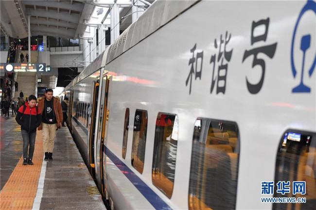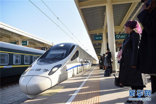11月16日,在烏魯木齊站,乘客準備登上由烏魯木齊開往哈密的D8804次動車組列車。新華社記者 丁磊 攝