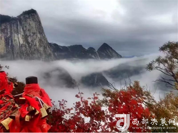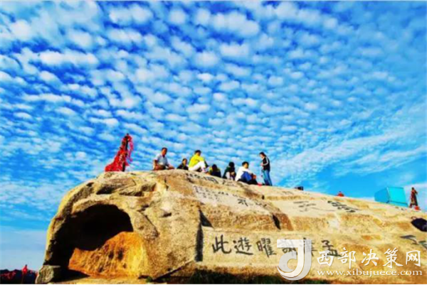 又因峰巔有巨石形狀好似蓮花瓣,古代文人多稱其為蓮花峰、芙蓉峰。西峰為一塊完整巨石,渾然天成。西北絕崖千丈,似刀削鋸截,其陡峭巍峨、陽剛挺拔之勢是華山山形之代表,因此古人常把華山叫蓮花山。西峰南崖有山脊與南峰相連,脊長300余米,石色蒼黛,形態(tài)好像一條屈縮的巨龍,人稱為屈嶺,也稱小蒼龍嶺,是華山著名的險道之一。