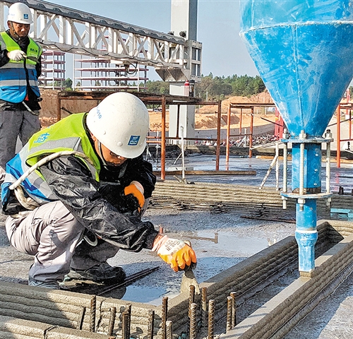 “工人可以趁著混凝土砂漿尚未凝固時在墻體底部開洞,為墻體內的鋼筋籠與地基中的鋼筋焊接預留出空間。”中建二局廣東建設基地有限公司科技部副經理黃云補充說,“手感像是切蛋糕,操作起來相當方便”。
