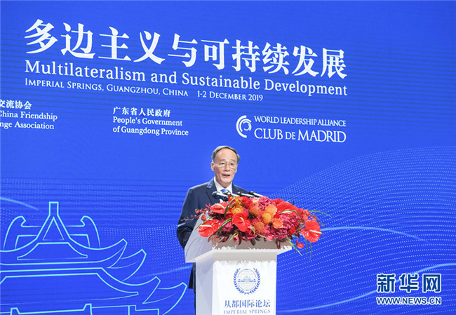 12月1日,國家副主席王岐山在廣州出席“2019從都國際論壇”開幕式并致辭。 新華社記者 申宏 攝