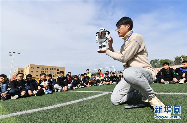 12月5日,在廣西融水苗族自治縣思源實(shí)驗(yàn)學(xué)校,譚博天在戶外給學(xué)生們上科技課。譚博天是西北工業(yè)大學(xué)的在讀碩士研究生,今年9月來(lái)到融水苗族自治縣思源實(shí)驗(yàn)學(xué)校,擔(dān)任班主任。 新華社記者 黃孝邦 攝