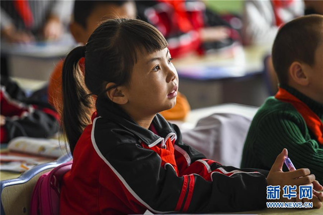 在哈密幸福村小學(xué)里,孩子們在用電采暖的教室里上課(10月22日攝)。新華社記者 趙戈 攝