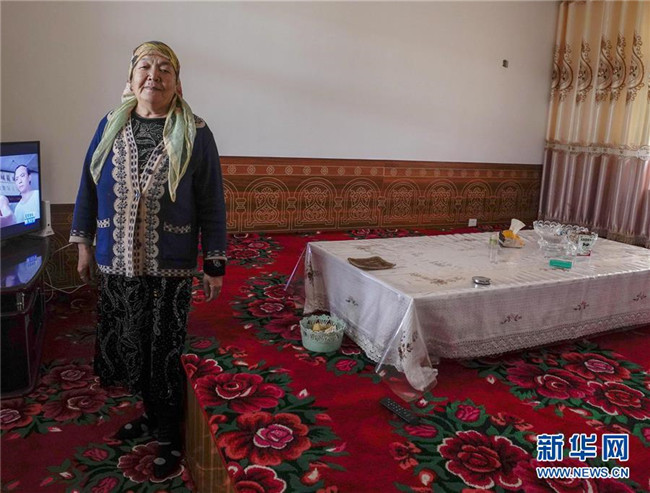 在哈密幸福村里,71歲的齊瑪汗大媽在溫暖的家里休息(10月22日攝)。新華社記者 趙戈 攝