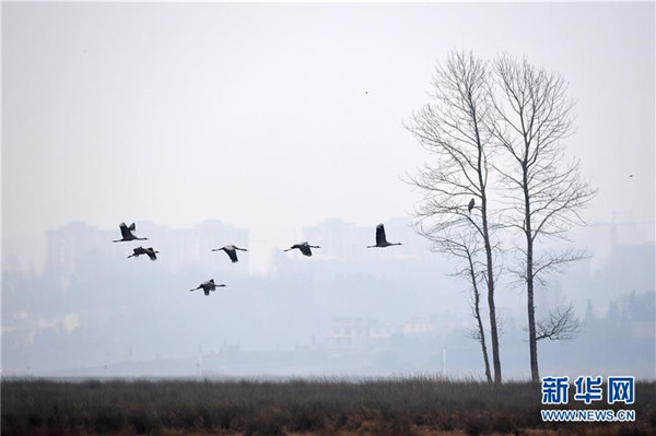 12月11日在貴州草海保護區(qū)拍攝的黑頸鶴。新華社記者楊文斌攝