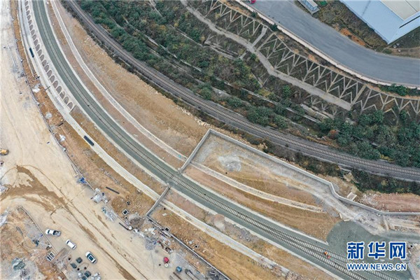 12月17日,中鐵八局建設者們在改貌鐵路口岸施工(無人機拍攝)。由中鐵八局承建的貴州省首個鐵路口岸——貴陽改貌鐵路口岸即將全面進入竣工驗收階段。據(jù)悉,貴陽改貌鐵路口岸為一級開放口岸,建成投運后將成為中歐班列的場站,年貨運吞吐量將達120萬噸,將進一步促進貴州省對接“一帶一路”和“國際陸海貿(mào)易新通道”,為貴州建設內(nèi)陸開放型經(jīng)濟試驗區(qū)提供有力支撐。新華社記者劉續(xù)攝
