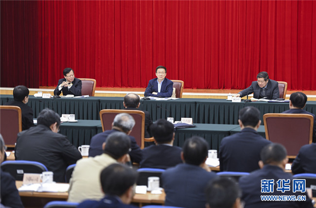 12月19日,中共中央政治局常委、國務院副總理韓正在國家發(fā)展改革委召開座談會。新華社記者張領攝
