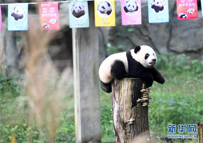 12月22日,重慶動物園1只半歲的大熊貓在戶外活動。當(dāng)日,重慶動物園為4只大熊貓寶寶“雙雙”“重重”“喜喜”“慶慶”舉行半歲生日慶?;顒?。4只半歲大熊貓在飼養(yǎng)員的照料下,在熊貓館運動場內(nèi)玩耍、嬉戲,與市民游客一同過冬至。新華社記者唐奕攝