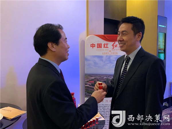 陜西西鳳酒營銷管理公司海外市場負責(zé)人閆紅斌代表企業(yè)向泰國國務(wù)院前副總理、泰中友好協(xié)會會長功·塔帕郎西贈送紅西鳳酒