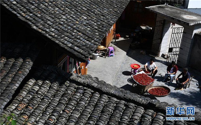 9月24日,貴州省銅仁市萬山區(qū)敖寨鄉(xiāng)甕背村駐村幫扶干部潘榮冬(左)和譚麗飛(中)在村民家中走訪。新華社記者 楊文斌 攝