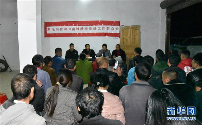 11月15日夜,貴州省銅仁市沿河土家族自治縣后坪鄉(xiāng)斯毛壩村,下沉一線的縣、鄉(xiāng)干部及村干部組織村民商討產(chǎn)業(yè)結構調(diào)整。新華社記者 段羨菊 攝