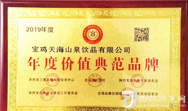 “年度價(jià)值典范品牌”榮譽(yù)由陜西省三秦品牌發(fā)展促進(jìn)中心、企業(yè)家日報(bào)社、陜西發(fā)展觀察專家委員會、陜西省品牌建設(shè)推進(jìn)工作委員會、全國品牌社團(tuán)組織聯(lián)席會陜西省組委會等單位聯(lián)合評審頒發(fā)。此次太極之源礦泉水品牌生產(chǎn)灌裝基地、“中國富硒食品產(chǎn)業(yè)化基地”——寶雞天海山泉飲品有限公司獲得此項(xiàng)榮譽(yù),可以說是對太極之源品牌價(jià)值的高度認(rèn)可和肯定!
