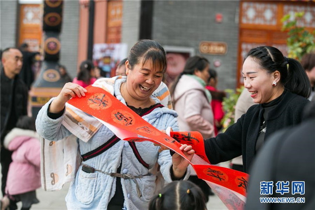 當(dāng)日,貴州省畢節(jié)市2020年迎新春“我們的中國(guó)夢(mèng)”文化進(jìn)萬(wàn)家惠民系列活動(dòng)在大方縣易地扶貧搬遷集中安置區(qū)奢香古鎮(zhèn)舉行。文化志愿者用小品、歌舞、義寫春聯(lián)、拍“全家福”等形式為搬遷群眾帶來(lái)了一場(chǎng)精彩的文化“盛宴”,讓易地扶貧搬遷安置點(diǎn)充滿濃濃的年味。
