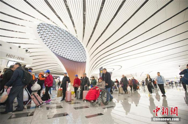 資料圖:2019年10月27日,民眾正在北京大興國際機(jī)場準(zhǔn)備乘機(jī)出行。 中新社記者 張云 攝