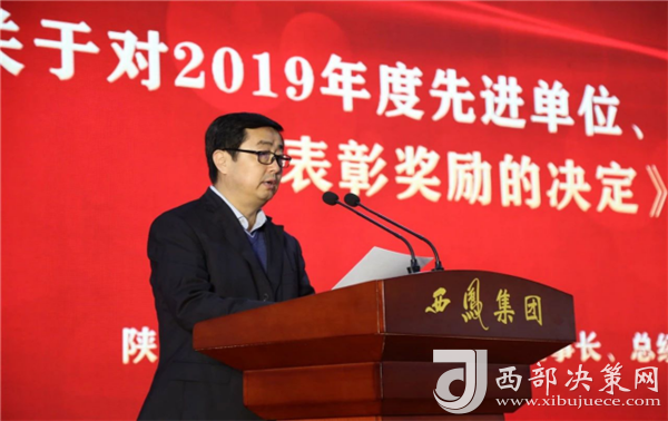 西鳳股份公司副董事長、總經(jīng)理賈智勇宣讀《關于對2019年度先進單位、先進個人進行表彰獎勵的決定》