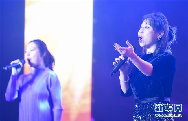 1月12日,中央歌劇院文藝小分隊志愿者、女高音歌唱家夏羽(右)和蔡楠在慰問演出上演唱《我愛你中國》。新華社記者 王全超 攝