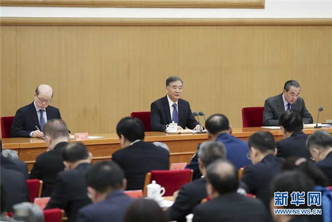 1月19日,2020年對(duì)臺(tái)工作會(huì)議在北京舉行。中共中央政治局常委、全國(guó)政協(xié)主席汪洋出席會(huì)議并講話。 新華社記者 丁海濤 攝