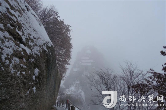 華山下雪后,銀裝素裹,奇景連連,大有電影《雪國列車》里蒼茫的未來感。