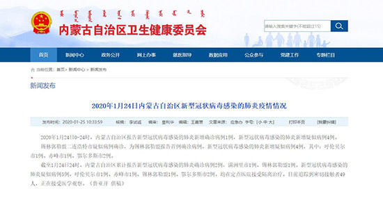 內蒙古自治區(qū)衛(wèi)生健康委員會官網(wǎng)截圖