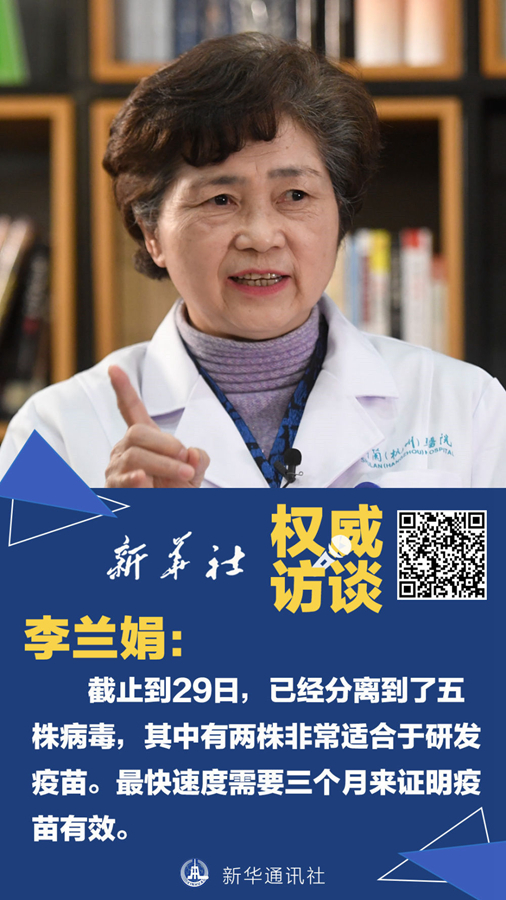 李蘭娟:研發(fā)疫苗第一步是要獲得病毒株。目前,我們已經(jīng)分離到了五株病毒,其中有兩株非常適合于研發(fā)疫苗。分離到種子株之后,還要把種子株的病毒在細(xì)胞中培養(yǎng),讓它長(zhǎng)到一定的量,這就需要一個(gè)多月。大量的細(xì)胞病毒拿到了,還要進(jìn)行滅活,并對(duì)它的免疫原性如何,能不能預(yù)防、有沒有效果、有沒有毒力、會(huì)不會(huì)造成新的感染等開展實(shí)驗(yàn)。