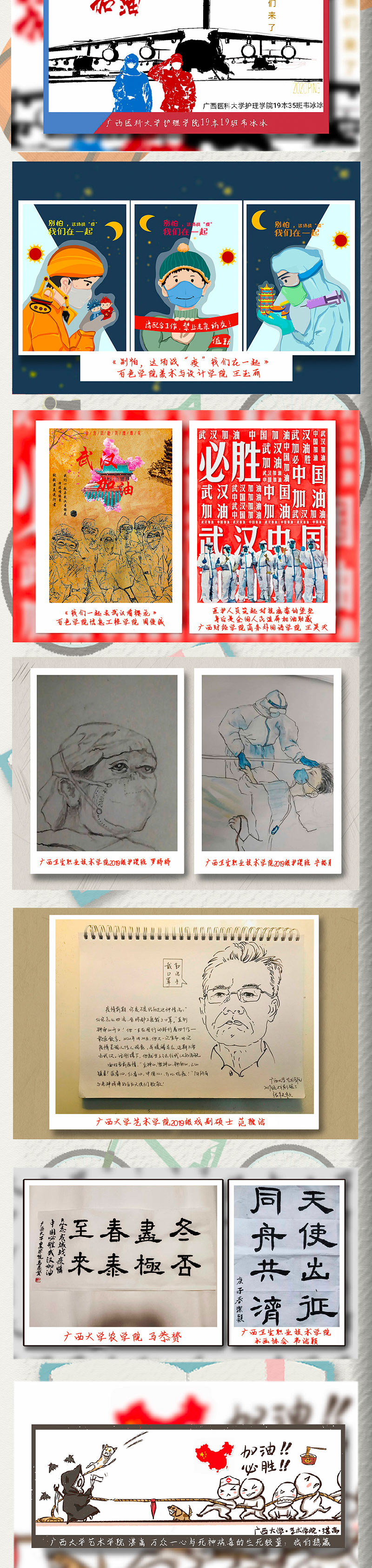 廣西各大高校的青年學(xué)子心系“疫”線,以抗擊疫情為主題創(chuàng)作了一批鼓舞人心的公益作品,向逆行英雄致敬,鼓勵(lì)人們積極樂觀面對(duì)疫情,以頑強(qiáng)意志、必勝信念打贏疫情阻擊戰(zhàn)。(彭遠(yuǎn)賀、實(shí)習(xí)生溫嘉康)
