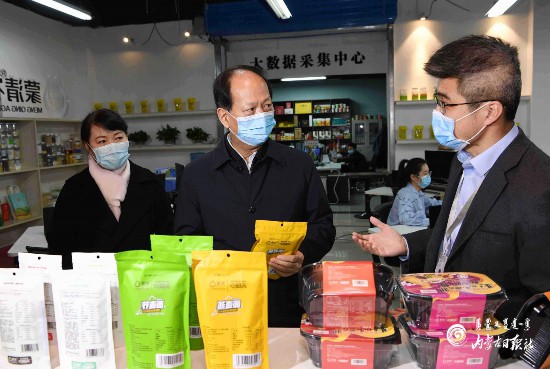 中小微企業(yè)和餐飲業(yè)受疫情影響較大,石泰峰高度關(guān)注。在金橋電子商務(wù)產(chǎn)業(yè)園,他通過觀看大數(shù)據(jù)監(jiān)測(cè)平臺(tái)、走訪商戶等方式,深入了解入駐企業(yè)經(jīng)營情況。在蒙清農(nóng)業(yè)電子商務(wù)運(yùn)營中心,企業(yè)負(fù)責(zé)人展示了他們研發(fā)的適合“宅”在家食用的“蕎面自嗨鍋”,該產(chǎn)品在疫情期間投入市場(chǎng)后十分暢銷。石泰峰指出,疫情給很多行業(yè)帶來了沖擊和影響,但危中也有機(jī)。要主動(dòng)應(yīng)變求變,加大產(chǎn)品創(chuàng)新力度,挖掘新的消費(fèi)熱點(diǎn),培育新的消費(fèi)模式,堅(jiān)持線上線下雙輪發(fā)力,加快釋放新興消費(fèi)潛力。在西貝莜面村,石泰峰走進(jìn)餐廳,詳細(xì)了解防疫防控和堂食營業(yè)、訂單外賣等情況。餐飲企業(yè)對(duì)顧客用餐實(shí)行掃碼、測(cè)溫、登記,顧客就餐保持規(guī)定距離、實(shí)行分餐,石泰峰要求把這些嚴(yán)格的防控措施切實(shí)落實(shí)到位。他強(qiáng)調(diào),有關(guān)部門要加強(qiáng)服務(wù)指導(dǎo),推動(dòng)符合條件的餐飲企業(yè)和店鋪積極有序復(fù)工,確保各個(gè)環(huán)節(jié)都安全可控。他還隨機(jī)走進(jìn)多家臨街餐館,檢查防疫措施,詢問員工返崗和營業(yè)情況。