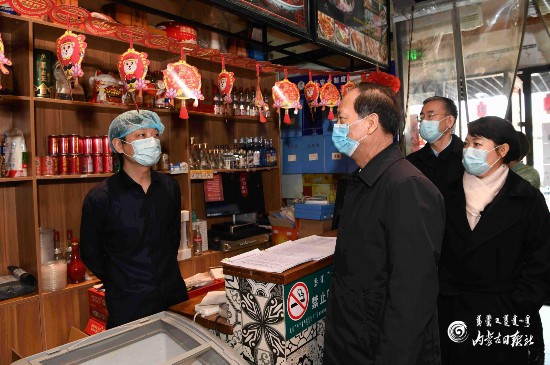 3月12日,自治區(qū)黨委書記、人大常委會(huì)主任石泰峰隨機(jī)走進(jìn)一家臨街餐館,檢查防疫措施,詢問員工返崗和營業(yè)情況。 內(nèi)蒙古日?qǐng)?bào)社融媒體記者 袁永紅 攝