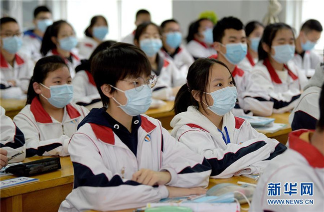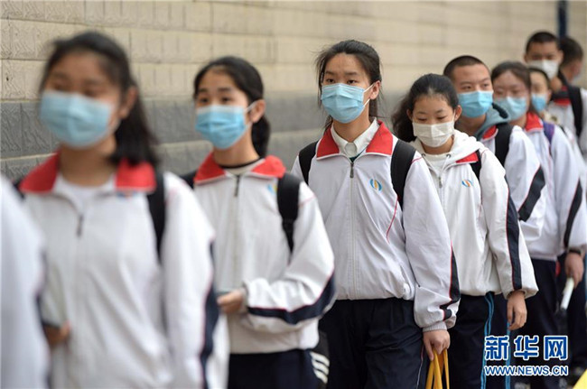 當(dāng)日,陜西初三年級35.46萬學(xué)生、中等職業(yè)學(xué)校畢業(yè)年級5.83萬學(xué)生返校復(fù)課。 新華社記者 劉瀟 攝