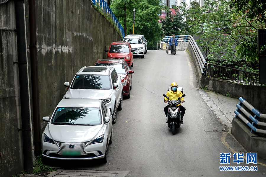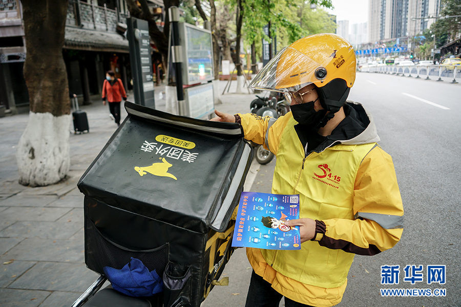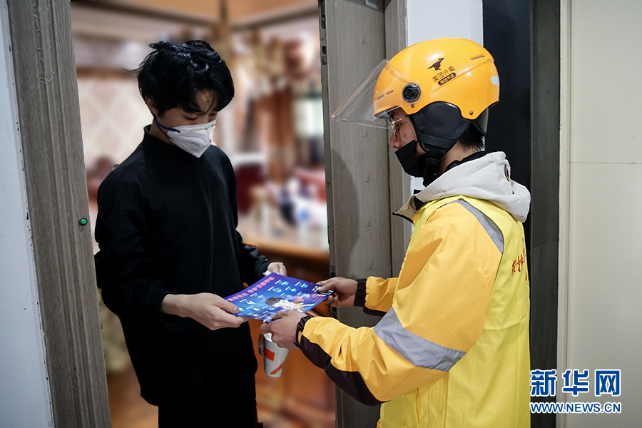 到達(dá)送餐的小區(qū)后,王淞迅速跟對方取得聯(lián)系,上門進(jìn)行配送。據(jù)沙坪壩區(qū)委政法委相關(guān)負(fù)責(zé)人介紹,通過快遞和外賣配送業(yè)務(wù)來發(fā)送宣傳制品,是為了讓宣傳教育活動由人員聚集到分散入戶,變集中宣傳為流動宣傳,同時不降低疫情期間群眾參與度。新華網(wǎng) 韓夢霖 攝