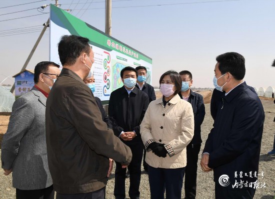 在五原縣塔爾湖現(xiàn)代農(nóng)業(yè)產(chǎn)業(yè)園,布小林詳細了解集現(xiàn)代農(nóng)業(yè)、脫貧攻堅、鄉(xiāng)村旅游、科普教育、河套美食于一體的現(xiàn)代農(nóng)業(yè)發(fā)展模式,察看農(nóng)村人居環(huán)境整治情況。在隆興昌鎮(zhèn)2萬畝高標準農(nóng)田建設(shè)及鹽堿地改良示范項目現(xiàn)場,布小林與當?shù)剞r(nóng)技部門、高??蒲袡C構(gòu)工作人員親切交流,深入了解項目進展情況。她還來到中國首家向日葵系統(tǒng)化技術(shù)研究機構(gòu)——三瑞農(nóng)科公司向日葵研究院,走進種質(zhì)資源庫和智能溫室,考察研發(fā)育種、向日葵品種優(yōu)化等情況。她指出,高標準農(nóng)田建設(shè)是保障國家糧食安全的關(guān)鍵舉措,要緊緊圍繞實施鄉(xiāng)村振興戰(zhàn)略,推動藏糧于地、藏糧于技,提高水土資源利用效率,切實增強農(nóng)田防災(zāi)抗災(zāi)減災(zāi)能力,為保障國家糧食安全提供堅實基礎(chǔ)。要不誤農(nóng)時抓好春季農(nóng)牧業(yè)生產(chǎn),堅持質(zhì)量興農(nóng)興牧、綠色興農(nóng)興牧和效益優(yōu)先,推動農(nóng)牧業(yè)高質(zhì)量發(fā)展。