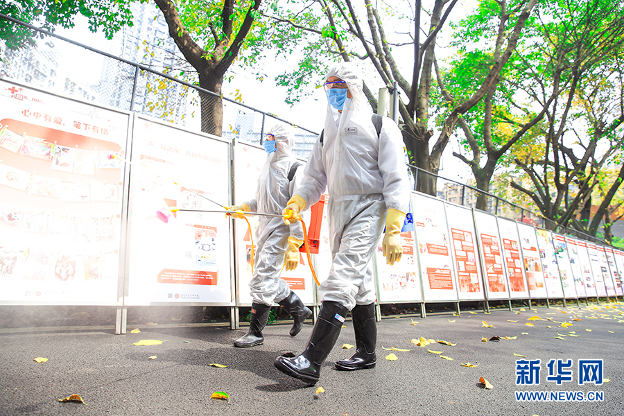 在重慶市第八中學(xué),口罩、洗手液、體溫槍(計)、消毒劑等防控物資保障到位。工作人員對教室、宿舍、食堂、設(shè)施設(shè)備、道路通道等學(xué)校各區(qū)域進(jìn)行了充分地消殺。新華網(wǎng)發(fā)
