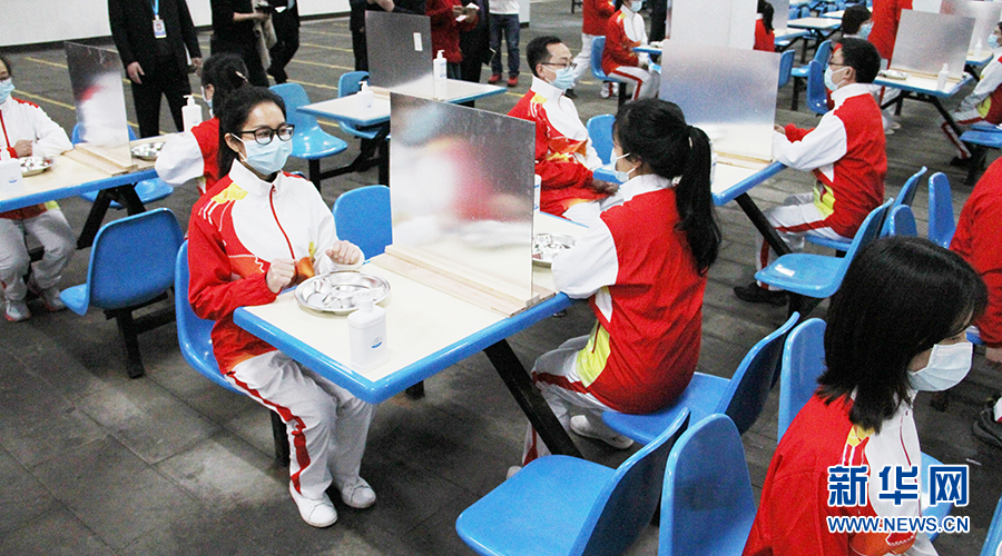 為了防止在就餐時交叉感染,重慶許多學(xué)校都對食堂設(shè)施進(jìn)行了相應(yīng)改造——譬如在就餐位上安裝隔板,以做到錯時錯峰分散用餐。圖為兩江育才中學(xué)演練食堂就餐環(huán)節(jié)。新華網(wǎng)發(fā)