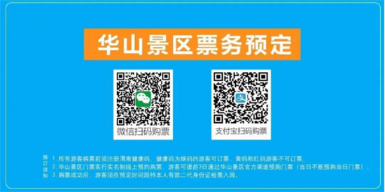?。?)游客須通過(guò)華山景區(qū)官方網(wǎng)站提前預(yù)購(gòu)門(mén)票,確認(rèn)成功后前往景區(qū)游覽;