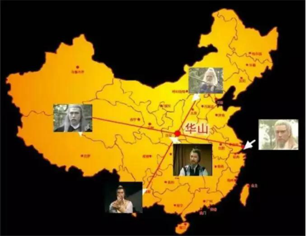 南帝段興智遠(yuǎn)在云南,北丐洪七公在北方中原地區(qū),東邪在東部桃花島,西毒在西域白駝山,只有王重陽在陜西關(guān)中,如果要從時(shí)間成本和人力成本來計(jì)算,看似只有把地點(diǎn)選在離大家距離相等的地方,才能保證這場(chǎng)比賽的相對(duì)有效和公正。