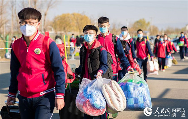 內(nèi)蒙古呼和浩特市第十二中學(xué)學(xué)生排隊進(jìn)入校園。