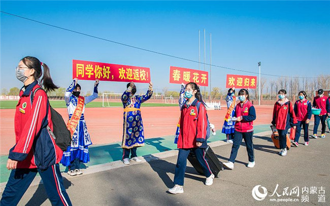 設(shè)置測溫消毒通道、實行錯峰分餐制、增設(shè)臨時隔點……4月26日,內(nèi)蒙古呼和浩特市玉泉區(qū)教育局多措并舉織密疫情防控安全網(wǎng)的前提下,高一、高二年級,初一、初二年級有序返校復(fù)學(xué)。這是該區(qū)第二批次學(xué)校開學(xué),高三、初三年級已于3月30日復(fù)課。(丁根厚 攝)