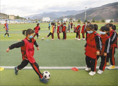 4月27日,在四川省涼山彝族自治州普格縣螺髻山鐵道兵希望學(xué)校的操場上,小球員在老師的指導(dǎo)下踢球。瀘州市龍馬潭區(qū)對口幫扶普格縣前方指揮部于2019年3月探索體育扶貧,在螺髻山鐵道兵希望學(xué)校組建了足球隊(duì),從幫扶干部中選派體育教師,利用業(yè)余時(shí)間指導(dǎo)球隊(duì)訓(xùn)練。男隊(duì)去年參加了涼山州青少年校園足球聯(lián)賽,并打進(jìn)了男子組八強(qiáng)。王明峰 何海洋攝影報(bào)道