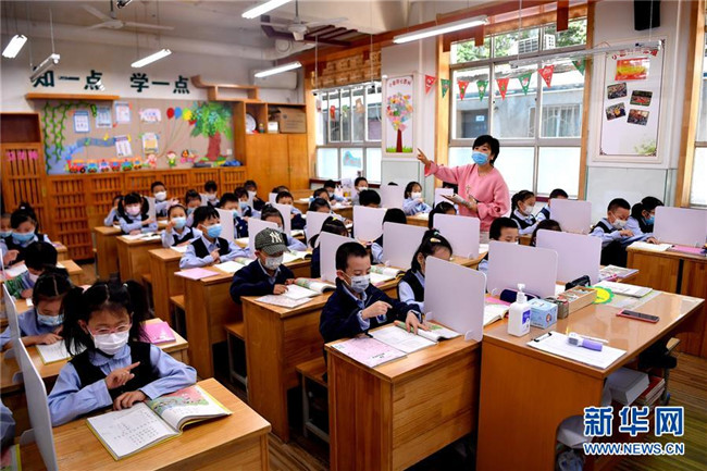 5月11日,陜西省西安市新城區(qū)后宰門小學(xué)一年級的學(xué)生在上課。新華社記者 劉瀟 攝