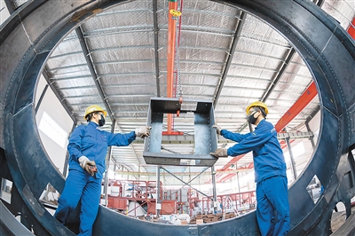 今年以來,江蘇省海安市在科學(xué)防控疫情的同時,及時為企業(yè)解難紓困,幫助民營企業(yè)迅速恢復(fù)產(chǎn)能、拓展國內(nèi)外市場,保持經(jīng)濟平穩(wěn)運行,確保務(wù)工人員有崗上、有活干、有錢賺。圖為5月17日,在海安市白甸鎮(zhèn)一企業(yè)車間內(nèi),工人在趕制建材裝備訂單。翟慧勇攝(人民視覺)