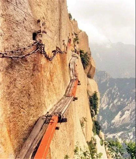 世界十大險(xiǎn)道之一,有700余年的歷史,是華山派第一代宗師元代高道賀志真為遠(yuǎn)離塵世靜修成仙,在萬仞絕壁上鑲嵌石釘搭木椽而筑。是華山的險(xiǎn)中之險(xiǎn)。古往今來,歷險(xiǎn)探勝者絡(luò)繹不絕。