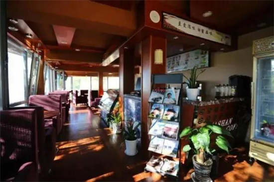 坐落于華山北峰云臺(tái)山莊??Х任菀怨艠滹L(fēng)格為主,玻璃落地窗通透明亮,猶如置身于大自然的懷抱中。