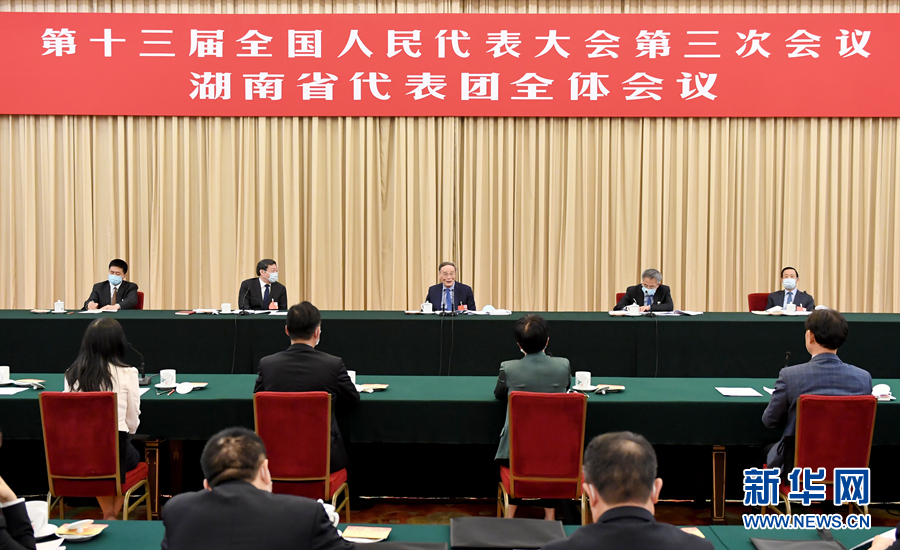 5月24日,國(guó)家副主席王岐山參加十三屆全國(guó)人大三次會(huì)議湖南代表團(tuán)的審議。 新華社記者 岳月偉 攝