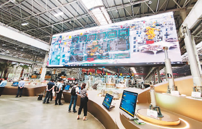 三一集團(tuán)“5G+廠(chǎng)區(qū)360度”監(jiān)控系統(tǒng)。新華社發(fā)