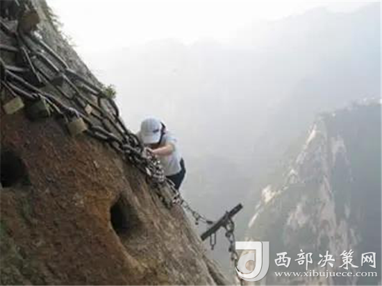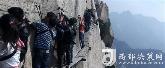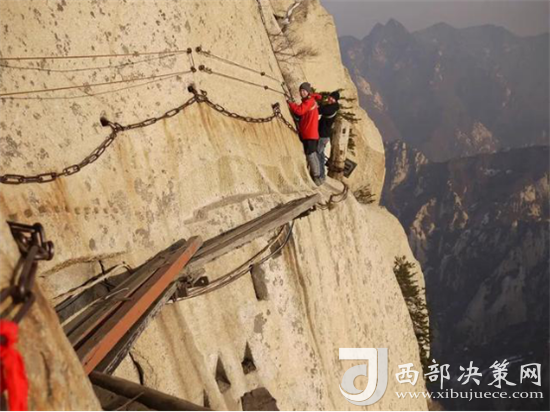 長空棧道位于華山南峰東側山腰,是華山派第一代宗師元代高道賀志真為遠離塵世靜修成仙,在萬仞絕壁上鑲嵌石釘搭木椽而筑。棧道上下皆是懸崖絕壁,鐵索橫懸,由條石搭成尺許路面,下由石柱固定,游人至此,面壁貼腹,屏氣挪步,被喻為“華山第一天險”。不過經歷了新冠病毒的考驗,真的不知道這對于偉大的醫(yī)護人員來說算不算險。