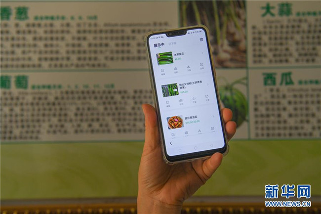 6月4日,在湘潭市雨湖區(qū)鶴嶺鎮(zhèn)龍安村,湘潭市仙女蔬菜產(chǎn)銷專業(yè)合作社的工作人員展示農(nóng)產(chǎn)品的微信購(gòu)買頁(yè)面。新華社記者 陳澤國(guó) 攝