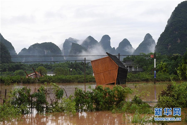 這是廣西陽朔縣被洪水沖毀的旅游設施(6月7日攝)。新華社記者 陸波岸 攝