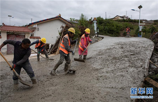 四川路橋公司的工人在金陽縣依達鄉(xiāng)保爾村對破損路面進行整治(6月5日攝)。坐落在金沙江畔的四川省金陽縣是國家級深度貧困縣,境內(nèi)群山連綿起伏,海拔落差大,眾多村寨處于高山或者高半山上,道路施工難度大。近年來,當(dāng)?shù)卣畬⒔煌ㄗ鳛槊撠毠缘南葘?dǎo)性工程,路越修越寬、越修越好,成為當(dāng)?shù)厝罕姷拿撠氈赂宦?。截?019年底,金陽縣實現(xiàn)所有鄉(xiāng)鎮(zhèn)通油路、建制村通硬化路,鄉(xiāng)道里程達329.9公里,村道里程達866.8公里。新華社記者江宏景攝